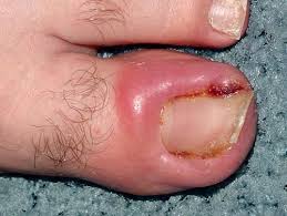 50% dos casos), posteriormente, o tornozelo, o calcanhar e o dorso do pé. A região afetada torna-se tão sensível que qualquer pressão, tornar-se insuportável. Após a fase aguda, o paciente pode ficar assintomático durante semanas, meses ou até anos.